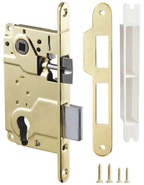 В комплект входит: замок, ответная планка, декоративная заглушка, комплект крепежа. Материал корпуса: сталь, материал планки и язычка: ZAMAK. Гарантия 5 лет.