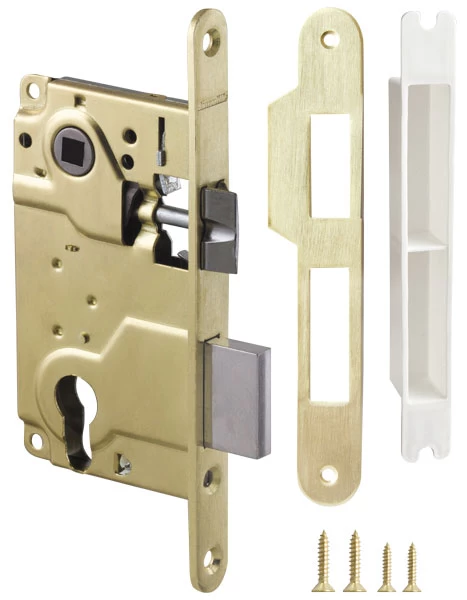 В комплект входит: замок, ответная планка, декоративная заглушка, комплект крепежа. Материал корпуса: сталь, материал планки и язычка: ZAMAK. Гарантия 5 лет.